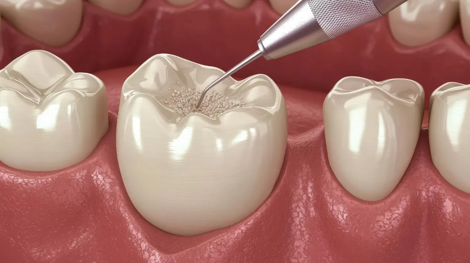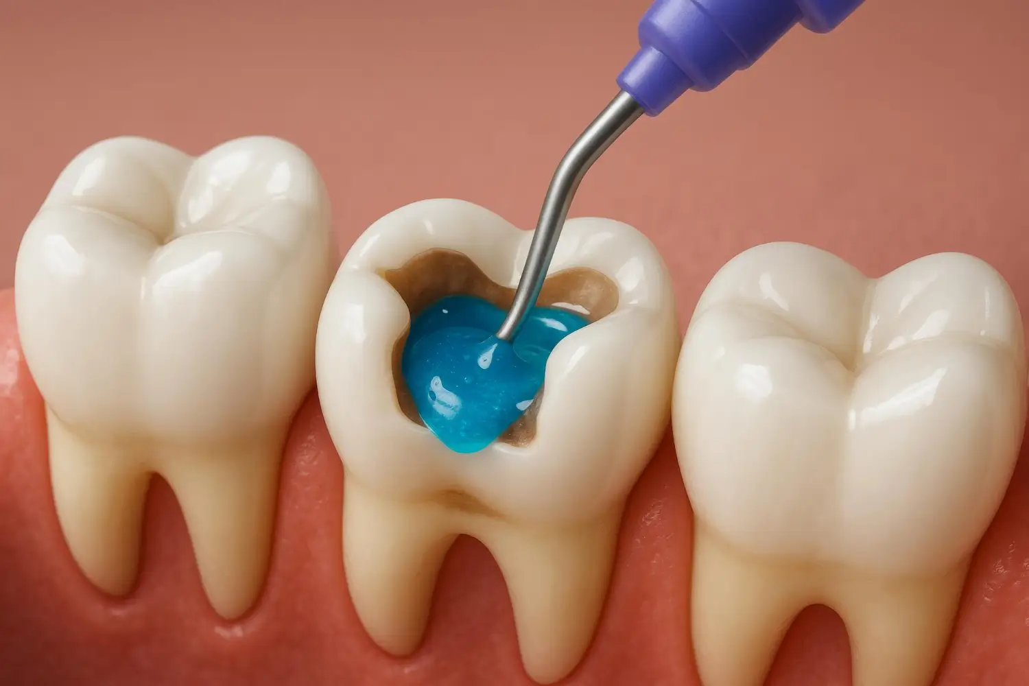 Dolgu için diş yüzeyi temizlenir ve hazırlanır.